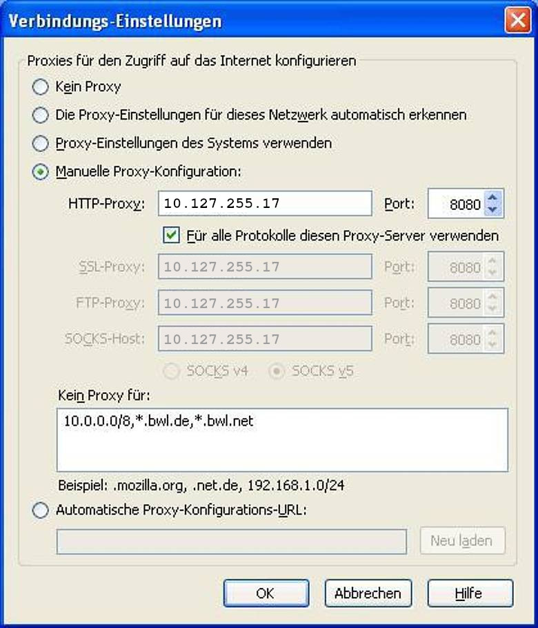 Nehmen Sie in Ihrem Browser folgende Proxy-Einstellungen vor: